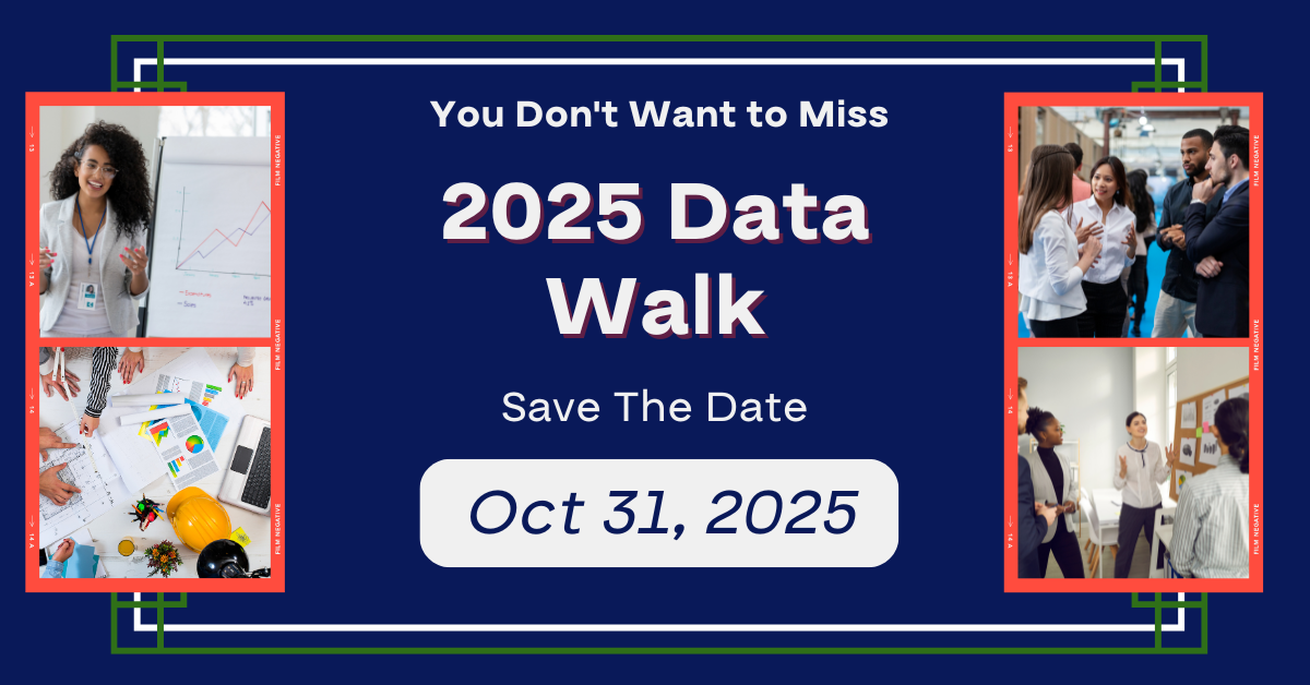 A blue rectangular sign displaying the text "You Don't Want to Miss 2025 Data Walk Save The Date Oct 31, 2025" in white letters.